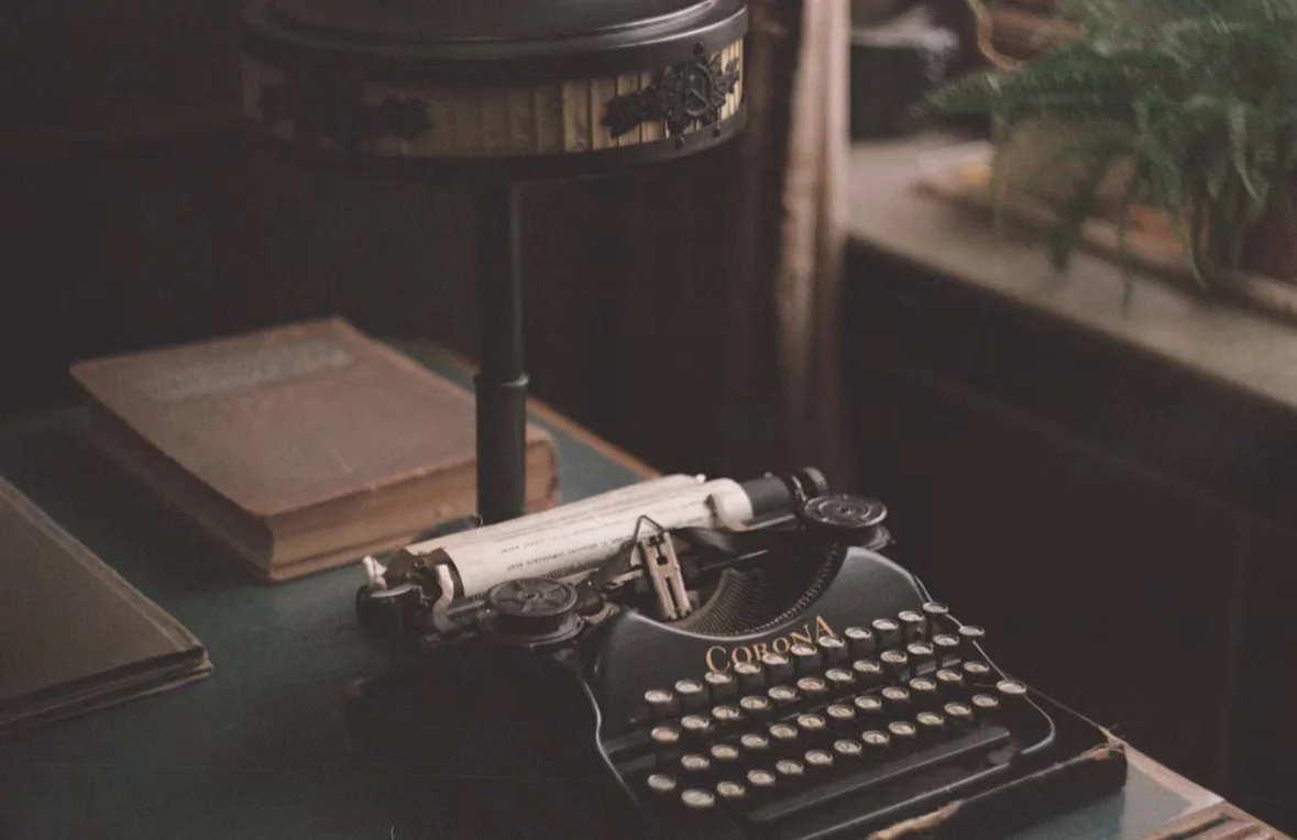 sitting at her new typewriter, or bent over a notepad and pen—my favorite gift of all time.